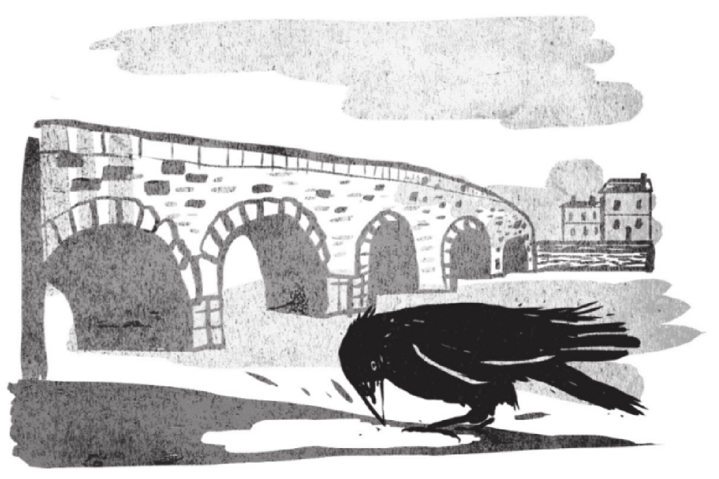 The illustrations by Holly Ovenden are absolutely exquisite. I loved the use of the vivid black of Magpie contrasted with the muted shadow-like effect of the rest of the image which made me think of the fluidity of time, which complements this story perfectly.