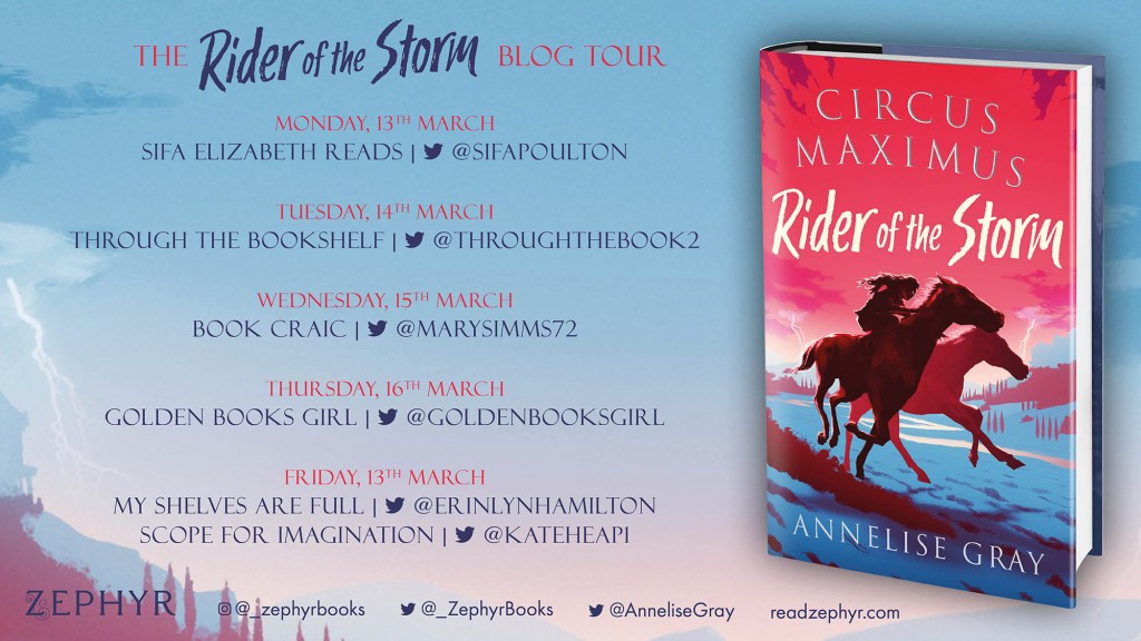 I have absolutely loved following Dido’s thrilling adventures in the Circus Maximus series, first in Race to the Death, then Rivals on the Track and now Rider of the Storm: a heart-pounding, action-packed adventure with an unforgettable heroine fighting for those she loves in the most dangerous race of her life.