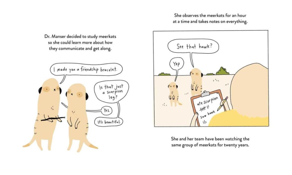 It then introduces a series of scientists and the animals which they study with an illustration of the scientist and animal. There are gorgeous illustrations of the animals, lots of fascinating facts and colourful graphic novel style illustrations with hilarious callouts which are guaranteed to bring giggles.